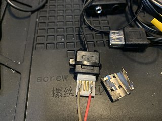 JAMMAハーネスの方に5V電源用USBコネクタ(メス)と、