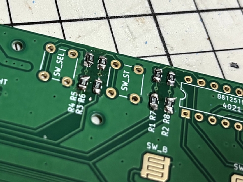 コントローラ基板にチップ抵抗のハンダ付け(×8ヶ所)があります。