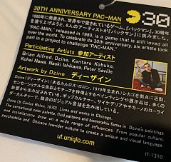 ユニクロの、 パックマン30周年記念Tシャツ これはDzine氏がデザインしたもの。 独特なデザインです。