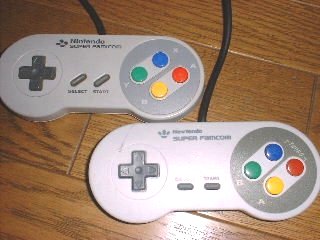 上がスーパーファミコン純正のコントローラで、