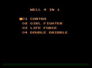 実質4本 ラベルには、ディーヴァ、美少女、 ジャッカル、魂斗羅... 実際の内容は魂斗羅しか合ってません。(-o-;) ラベルに美少女 PRETTY GIRL FIGHTER、 メニュー画面にGIRL FIGHTER...これはもしや!? AV美少女戦士なのか!?...と思わせて、 スケバン刑事III...ガッカリ。 というなんとも言えないXin1です。